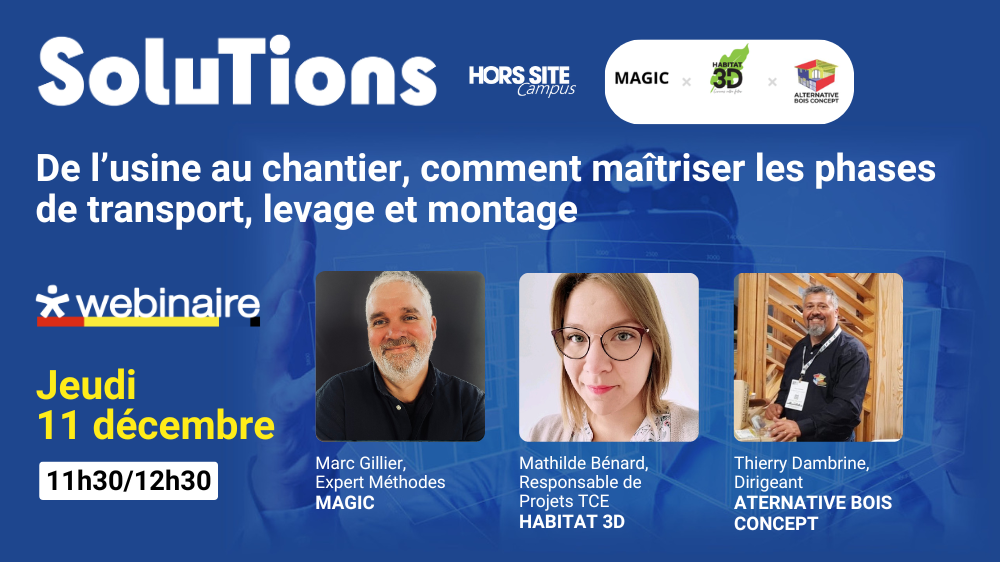 Notre prochain webinaire Solutions abordera la thématique essentielle du transport, levage et montage des éléments préfabriqués sur un chantier de construction
